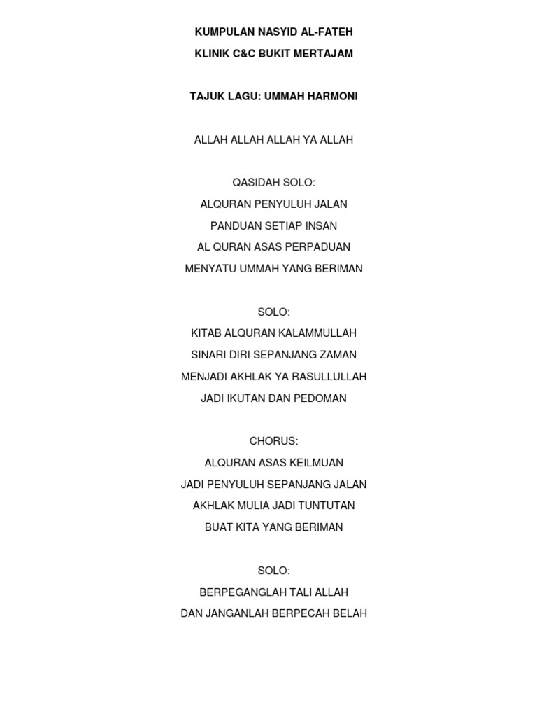 Jika menjadi hiasan diri. Akhlak Mulia korus Ingat pesan rasul junjungan Hiaskanlah dirimu Dengan sifat-sifat yang mulia Ia fitrah semua manusia Dengan sifat-sifat yang mulia Ia fitrah semua manusia Akhlak yang mulia ibarat bunga Ia disukai semua manusia Hati kan tertarik bila terpandangnya Ia sifat mahmudah yang mulia Akhlak yang mulia sangat istimewa Jika menjadi hiasan diri Ia disukai.